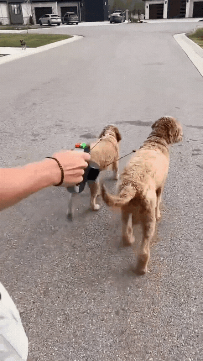 Each leash retracts independently with its own button, so you control each pup with ease. With one leash that does the job of two, you’ll finally enjoy stress‑free walks—whether your dogs zig, zag, or stop to sniff.